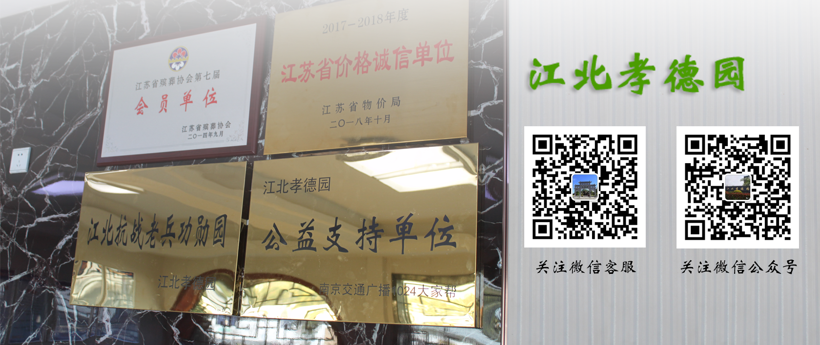 江北孝德園位于南京市六合區(qū)殯儀館南側(cè),是經(jīng)江蘇省民政廳批復(fù)、六合區(qū)唯一一家正規(guī)的經(jīng)營(yíng)性公墓,2018年榮獲江蘇省物價(jià)局頒發(fā)的“江蘇省價(jià)格誠(chéng)信單位”,是江蘇省殯葬協(xié)會(huì)會(huì)員單位、南京交通廣播1024大家?guī)凸嬷С謫挝唬彩墙钡貐^(qū)最后一塊碑式陵園。